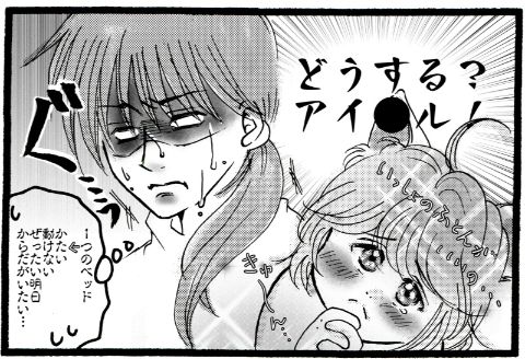 1つのベッドで手をつないで寝ました。(せまい・いたい・かたい)